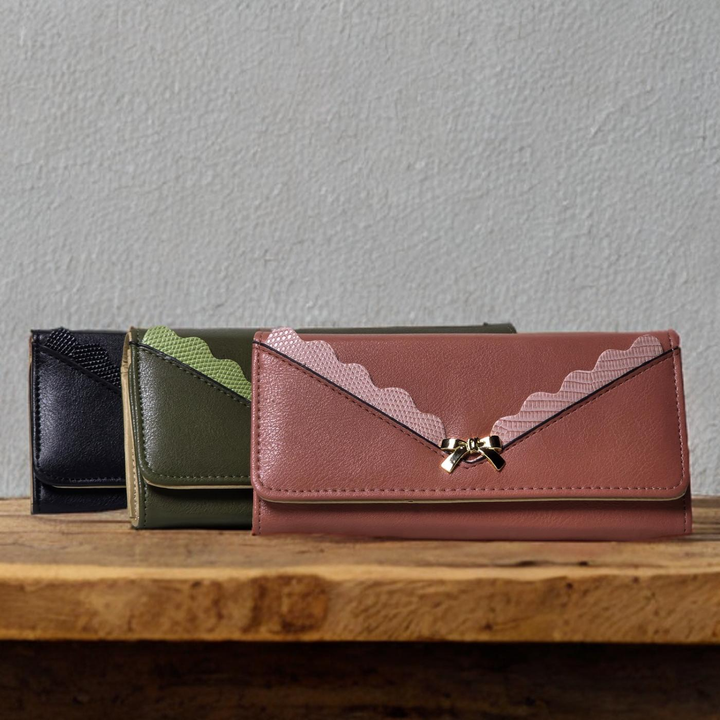 Inspired by classic correspondence, these gorgeous tri-fold wallets feature a distinctive, scalloped edge design that gives the look of a sealed envelope. Perfect for the modern woman who values both fashion and functionality.