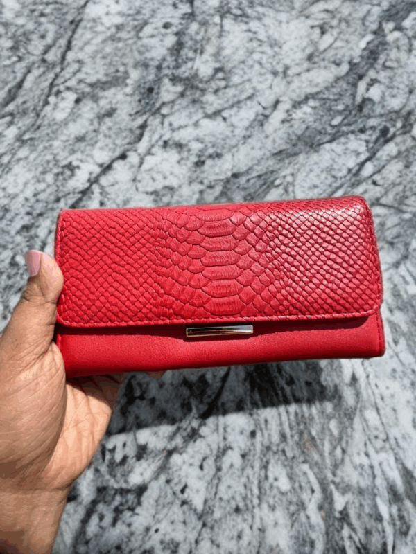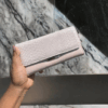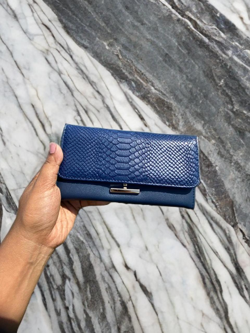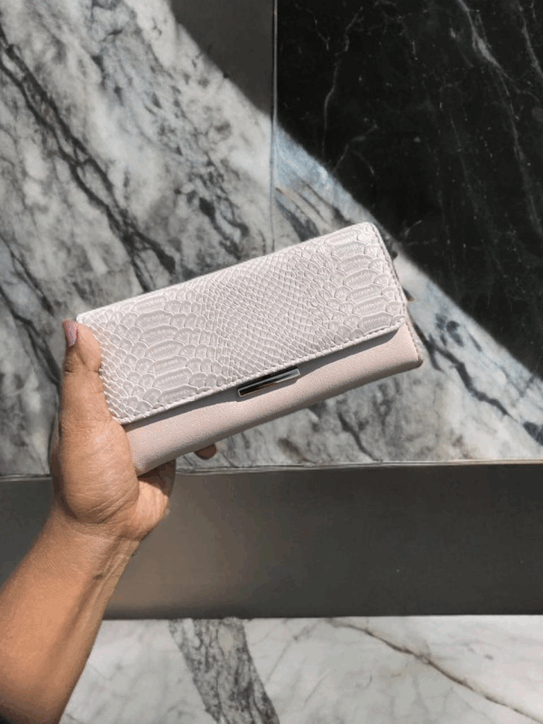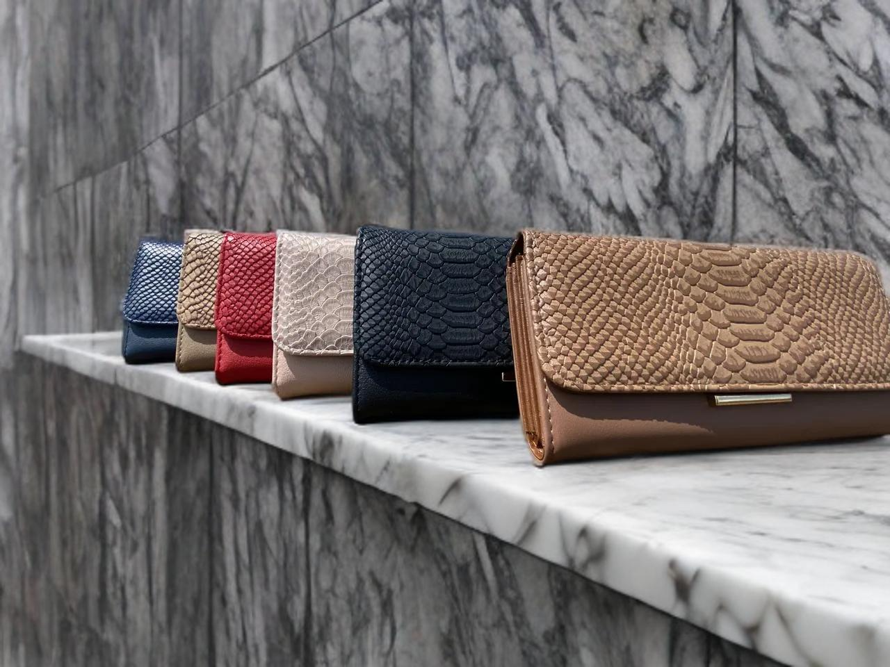 Elevate your accessory game with our stunning envelope wallet/clutch. Featuring a luxurious, embossed texture reminiscent of exotic leather on the flap, this wallet is as fashionable as it is functional. It opens up to a spacious interior with multiple card slots, clear ID windows, and a secure zippered compartment. Available in a vibrant palette of colors—including classic Navy, bold Red, and versatile Beige—it’s the perfect statement piece for any occasion.